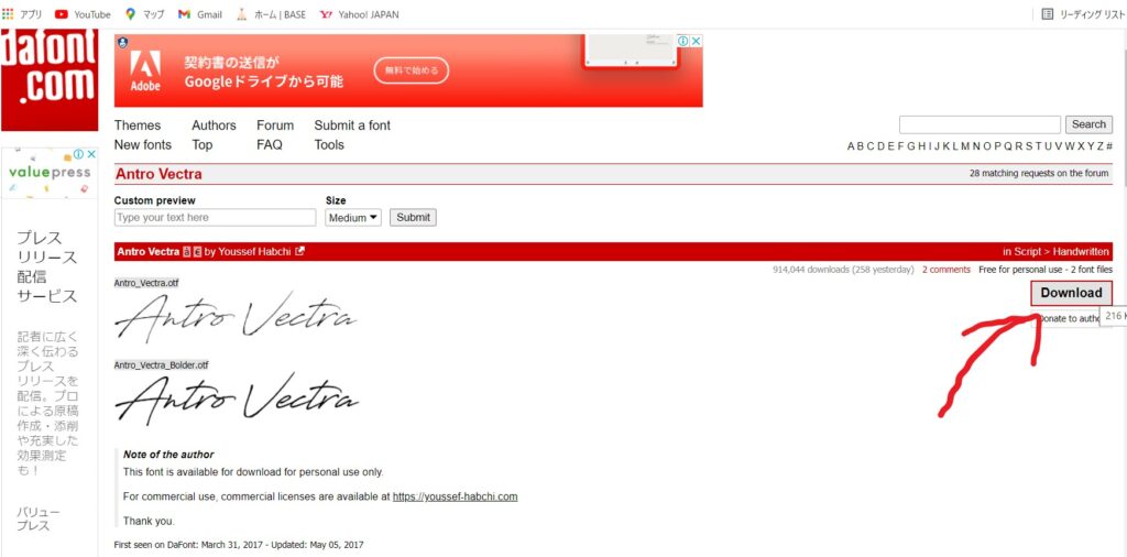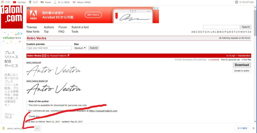 赤線で引いたフォントをDLはこちらをクリックします。
