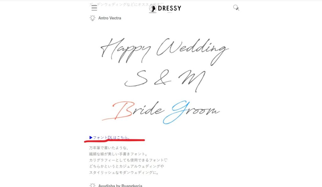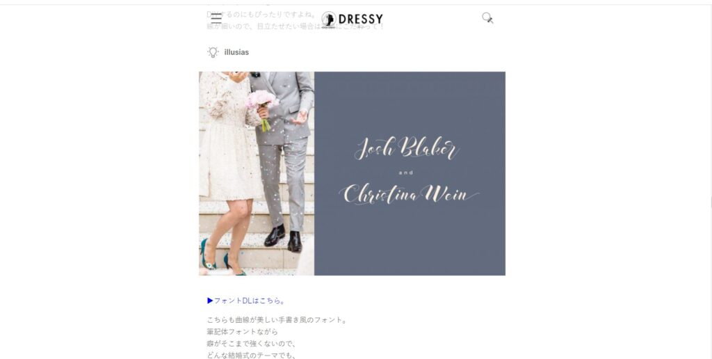 「フリー書体」、「ブライダルで使いたい書体」などで検索するといろんなものがヒットするので、