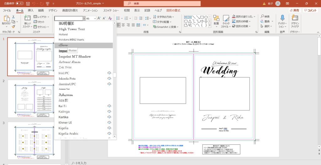 ブライダルアイテム制作|ブライダルワークス Photoria(フォトリア) ブライダルワークス Photoriaでは富山市を拠点に活動するデザイナーyucoが、ブライダル関係の仕事と紙面デザインの仕事の経験を生かし、ウェルカムボード・プロフィールパンフレット・ブライダル新聞など、ウェディングのペーパーアイテムを中心に、ECサイトのバナー制作、商品登録作業まで、幅広いデザイン制作を行っています。