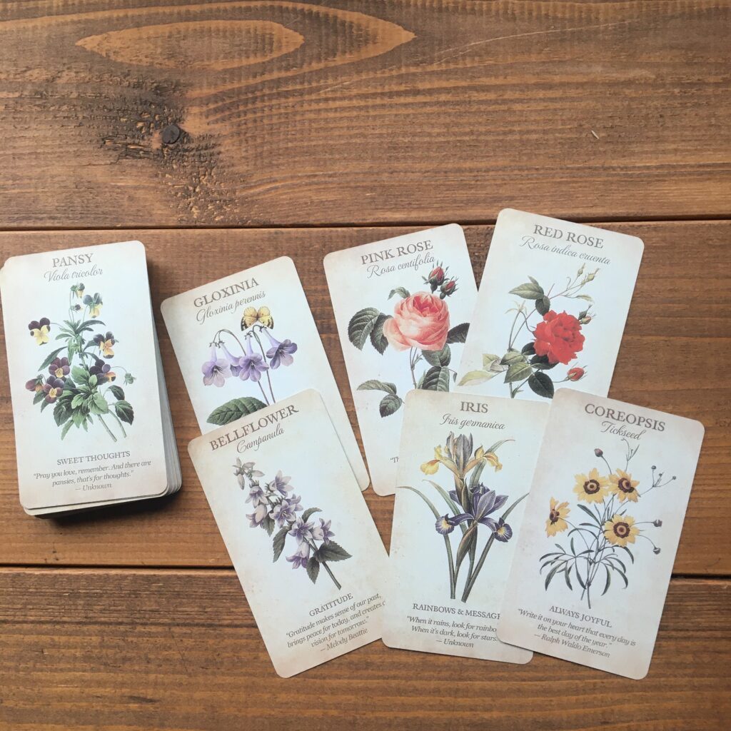 全部で44枚ありまして、 1枚ずつ絵柄が違います。 絵で見て何の花なのか分かるものもあるのですが、ほぼ知らないお花。 中学英語ぐらいのレベルなので単語調べながら読み解いていきたいと思います。 気長に・・・。
