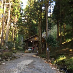 山を登っていくと、パッと開けて広めでの駐車場が見えてきます。