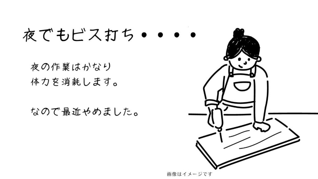 現在、お店のオーダーはストップですが、元気に作業をしているところです。