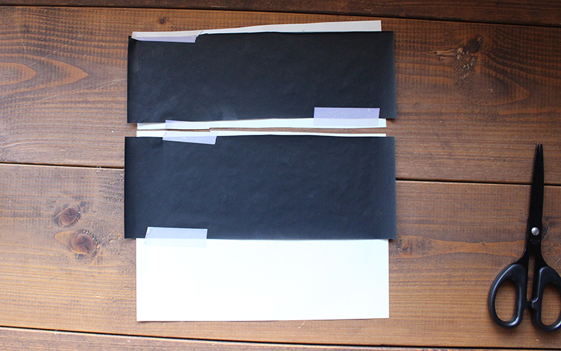 2、文字に合わせてカーボン紙を配置し、テープで止める