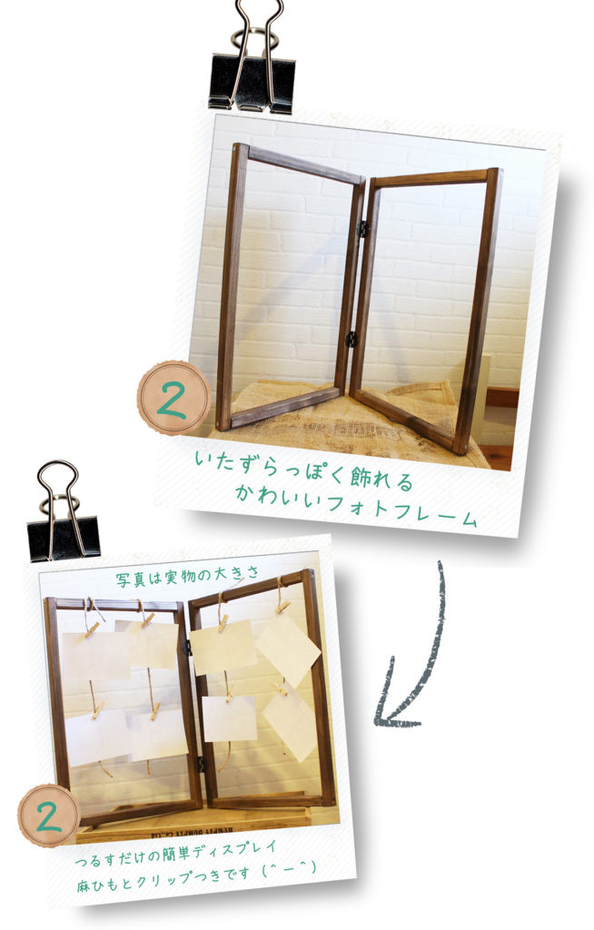 実際のL版サイズのものを8枚飾れるようにしてあります。お気に入りのスナップ写真や前撮りのものを飾ってゲストにみてもらうといいですね!